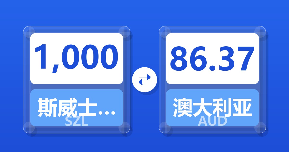 1,000 斯威士兰里兰吉尼 (SZL) = 86.56 澳大利亚元 (AUD)