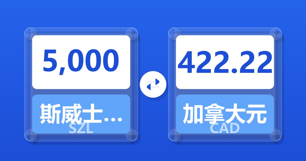 5,000 斯威士兰里兰吉尼 (SZL) = 422.22 加拿大元 (CAD)