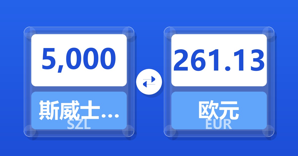 5,000 斯威士兰里兰吉尼 (SZL) = 261.13 欧元 (EUR)