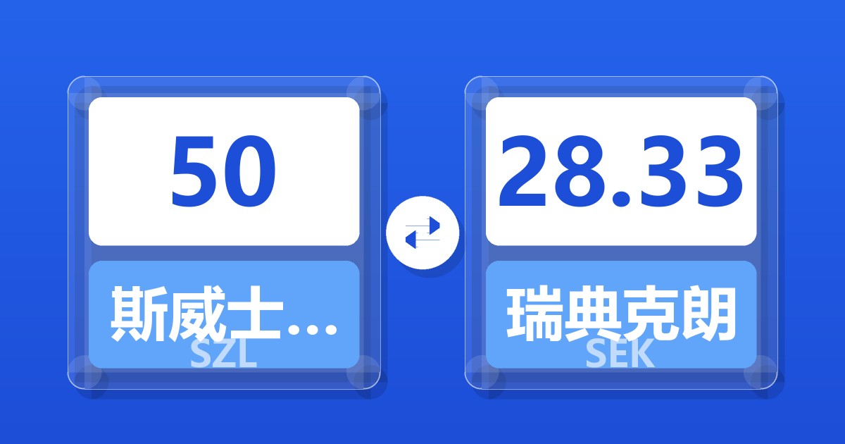 50 斯威士兰里兰吉尼 (SZL) = 28.37 瑞典克朗 (SEK)