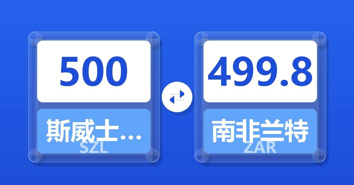 500 斯威士兰里兰吉尼 (SZL) = 500.04 南非兰特 (ZAR)