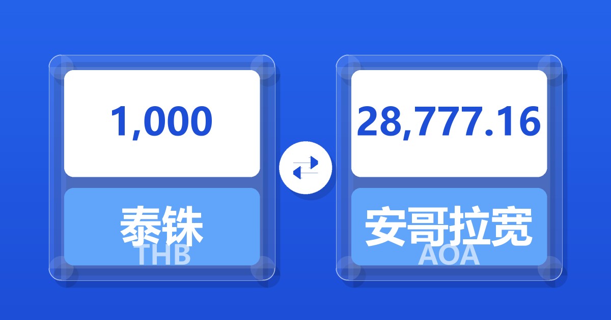1,000 泰铢 (THB) = 28,817.01 安哥拉宽扎 (AOA)