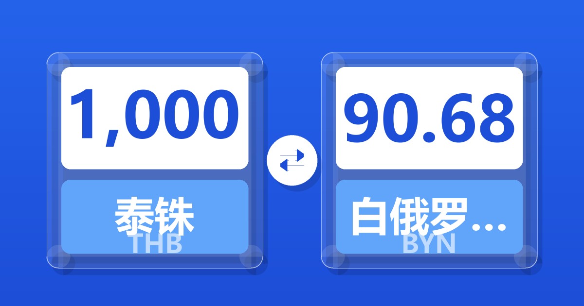 1,000 泰铢 (THB) = 91.10 白俄罗斯卢布 (BYN)