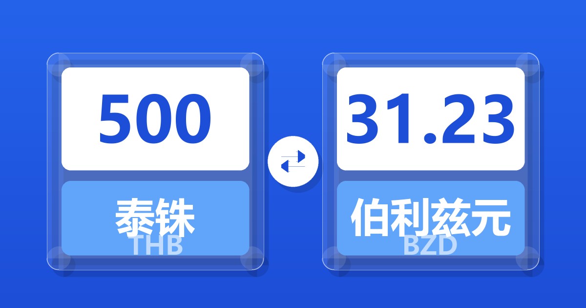500 泰铢 (THB) = 31.23 伯利兹元 (BZD)