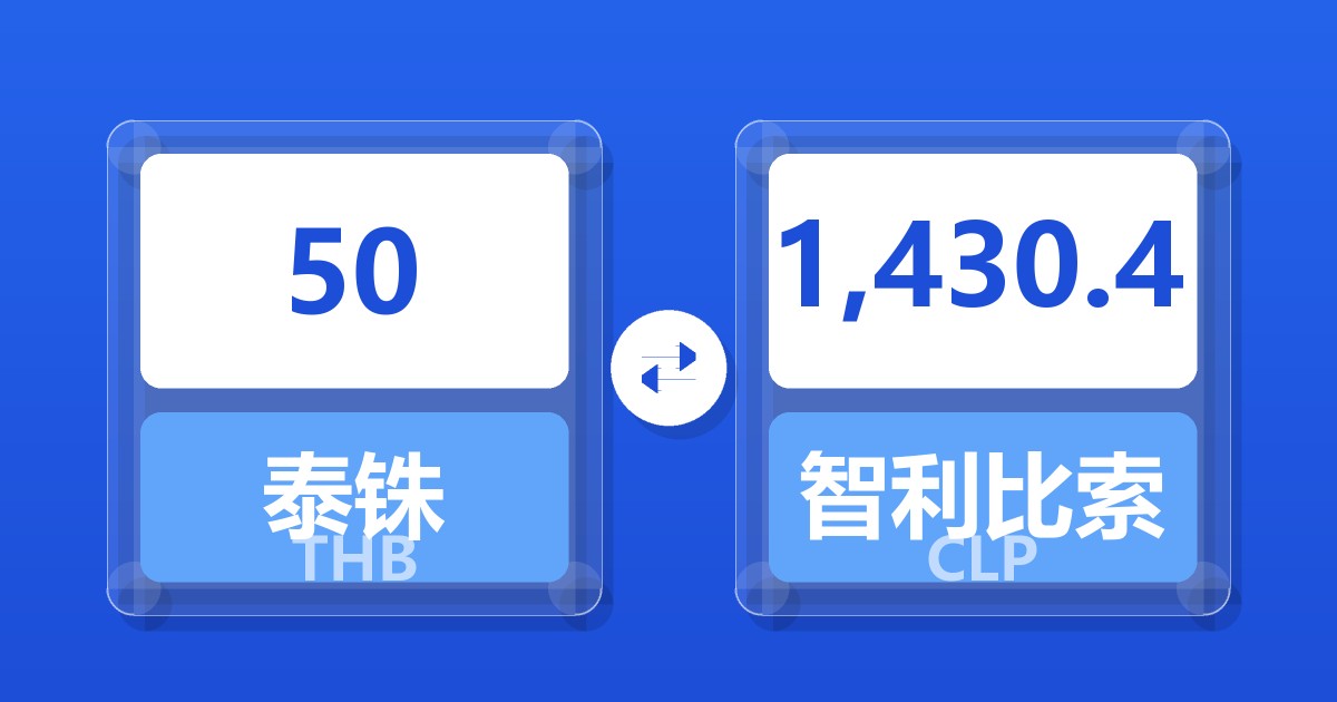 50 泰铢 (THB) = 1,430.40 智利比索 (CLP)