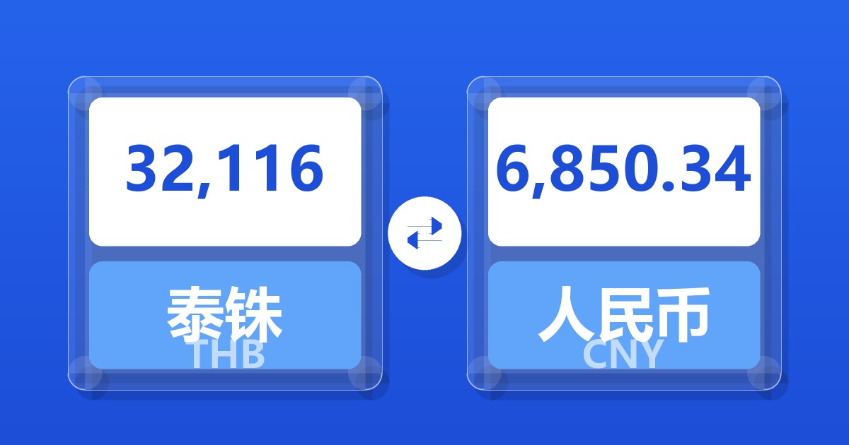 32,116 泰铢 (THB) = 6,864.50 人民币 (CNY)