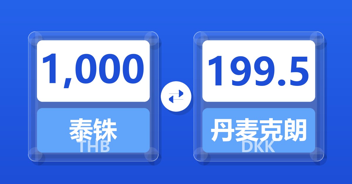 1,000 泰铢 (THB) = 199.50 丹麦克朗 (DKK)