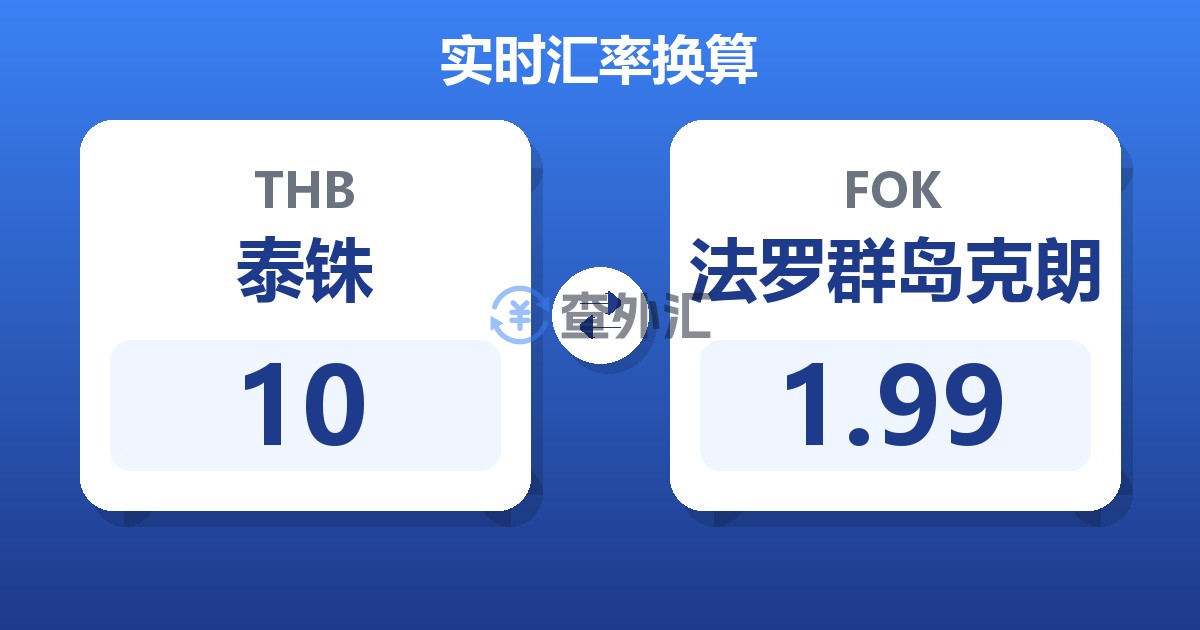 10 泰铢 (THB) = 2.00 法罗群岛克朗 (FOK)