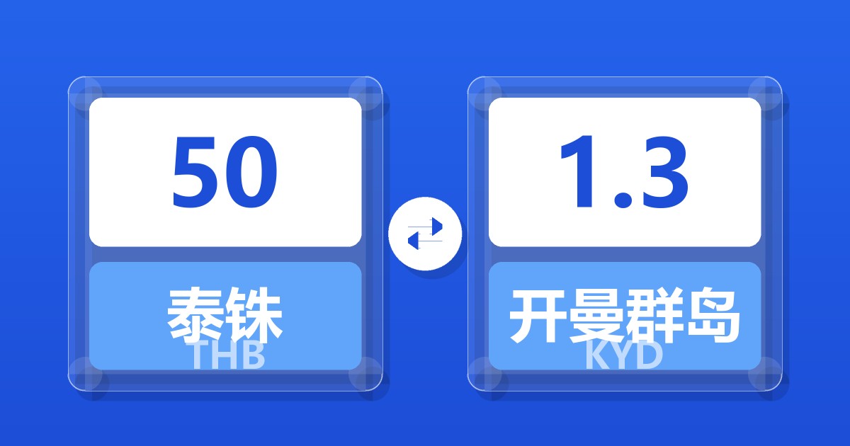 50 泰铢 (THB) = 1.30 开曼群岛元 (KYD)