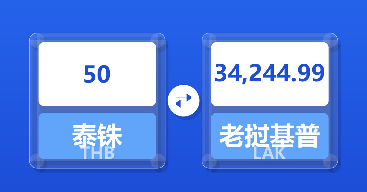 50 泰铢 (THB) = 34,315.17 老挝基普 (LAK)