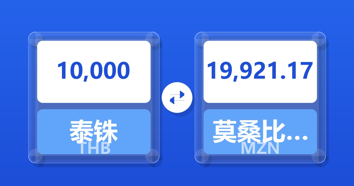 10,000 泰铢 (THB) = 19,921.17 莫桑比克梅蒂卡尔 (MZN)
