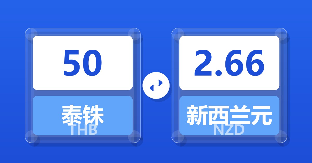 50 泰铢 (THB) = 2.68 新西兰元 (NZD)