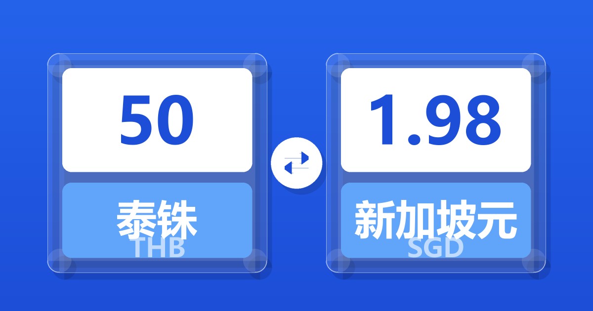 50 泰铢 (THB) = 1.99 新加坡元 (SGD)