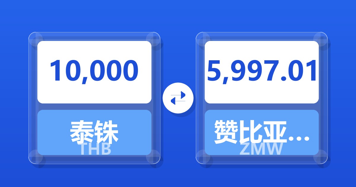 10,000 泰铢 (THB) = 6,030.07 赞比亚克瓦查 (ZMW)