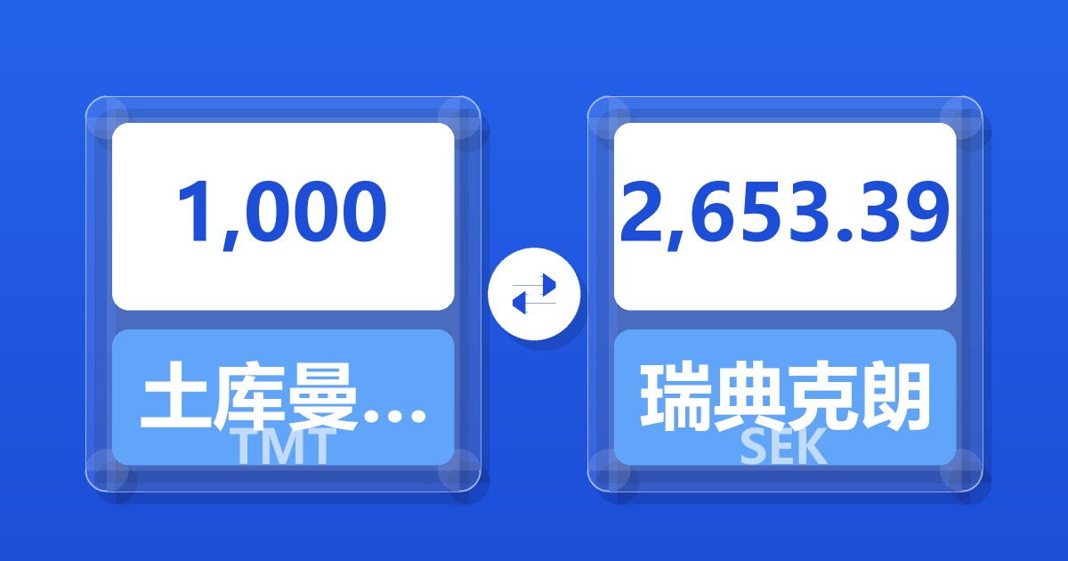 1,000 土库曼斯坦马纳特 (TMT) = 2,653.39 瑞典克朗 (SEK)