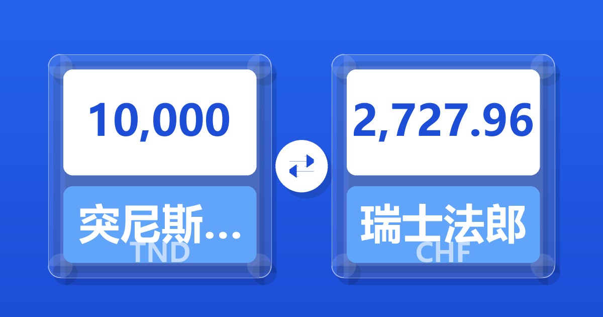 10,000 突尼斯第纳尔 (TND) = 2,720.23 瑞士法郎 (CHF)