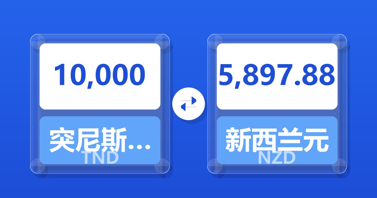 10,000 突尼斯第纳尔 (TND) = 5,905.71 新西兰元 (NZD)