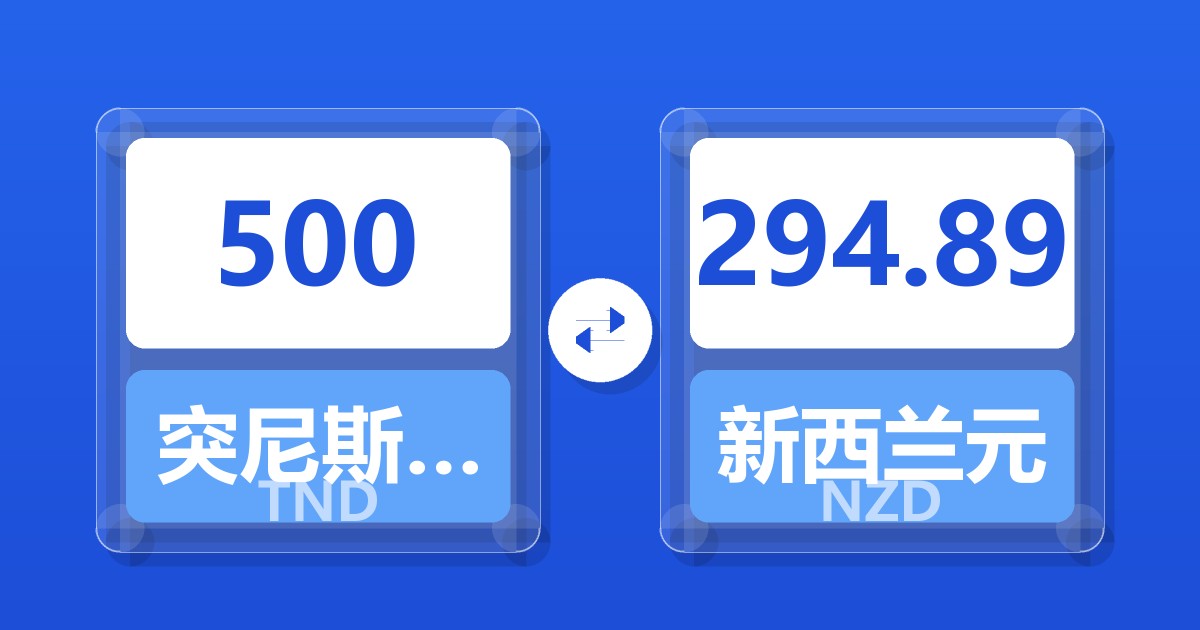 500 突尼斯第纳尔 (TND) = 295.29 新西兰元 (NZD)