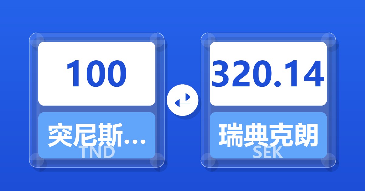 100 突尼斯第纳尔 (TND) = 320.14 瑞典克朗 (SEK)