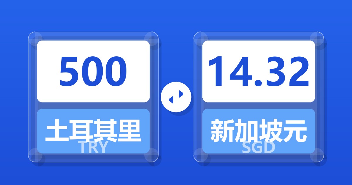 500 土耳其里拉 (TRY) = 14.32 新加坡元 (SGD)