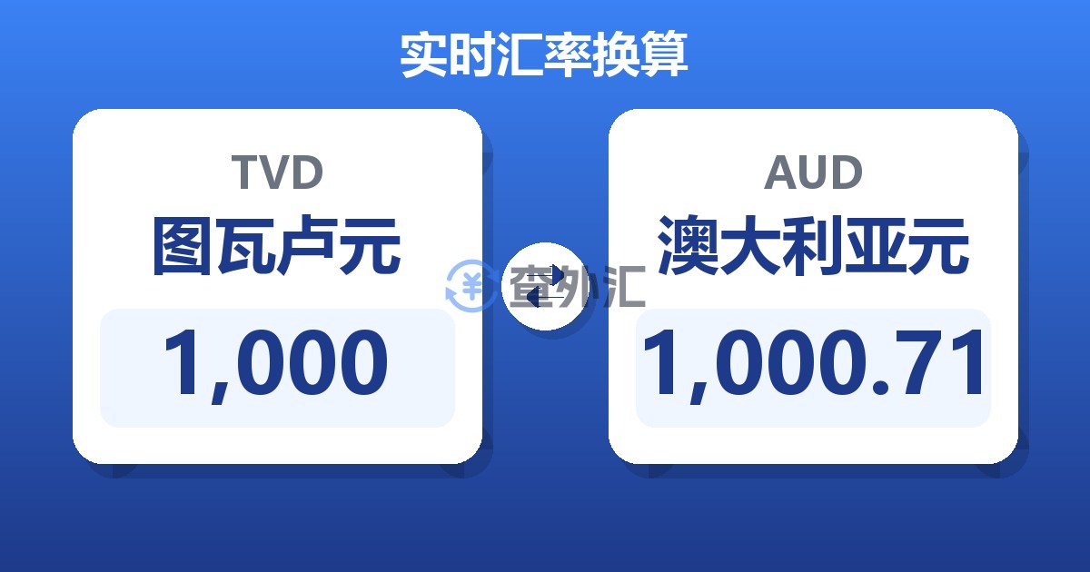 1,000 图瓦卢元 (TVD) = 1,000.21 澳大利亚元 (AUD)