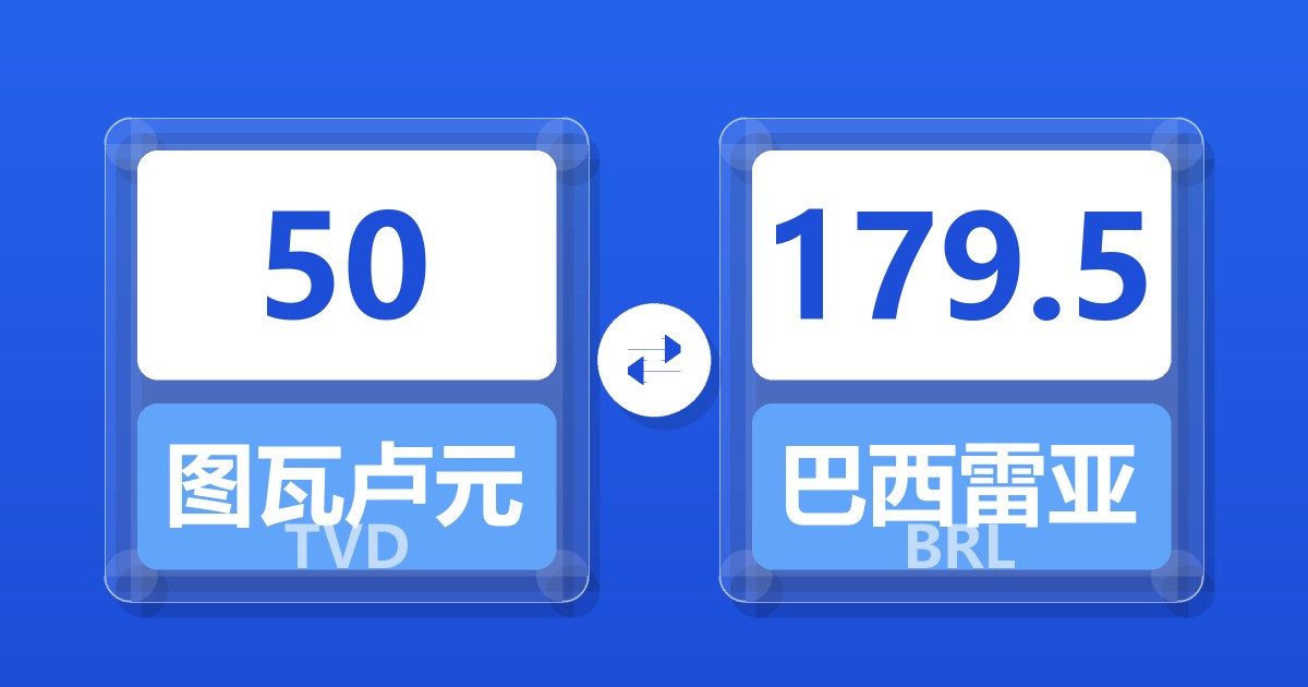 50 图瓦卢元 (TVD) = 179.78 巴西雷亚尔 (BRL)