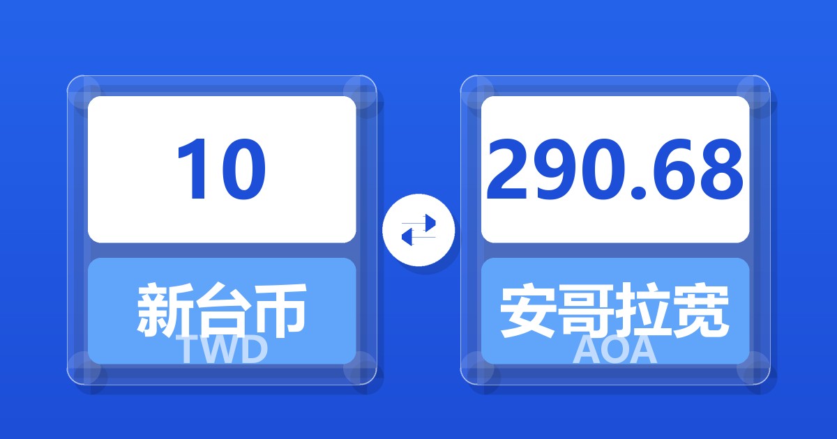 10 新台币 (TWD) = 290.56 安哥拉宽扎 (AOA)