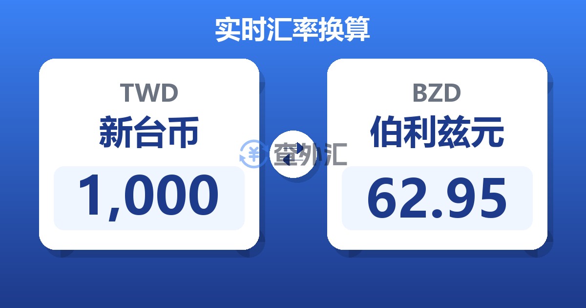 1,000 新台币 (TWD) = 62.98 伯利兹元 (BZD)