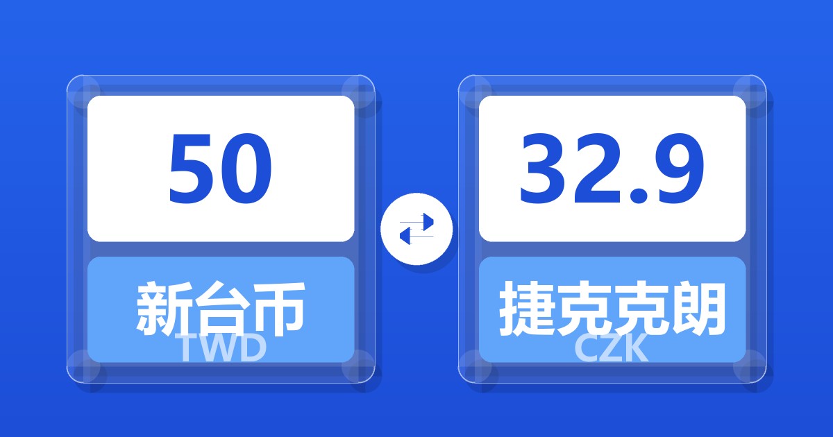 50 新台币 (TWD) = 32.90 捷克克朗 (CZK)