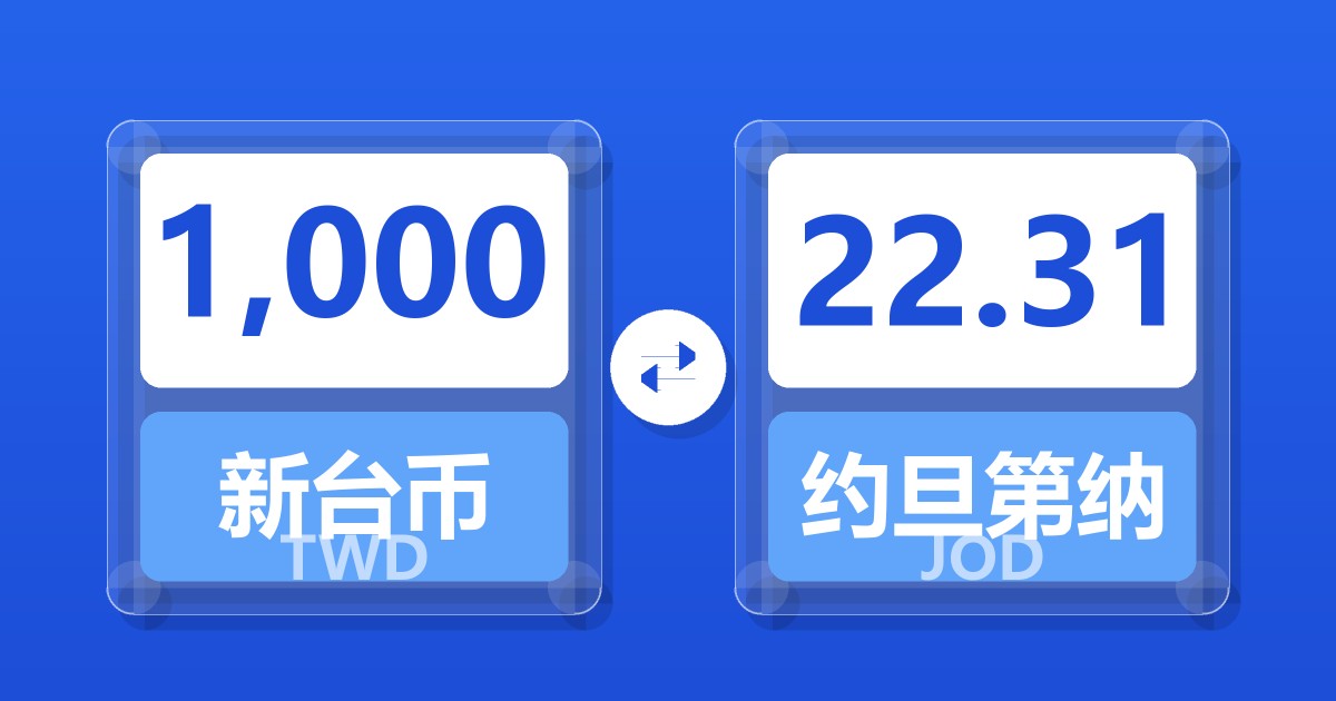 1,000 新台币 (TWD) = 22.33 约旦第纳尔 (JOD)