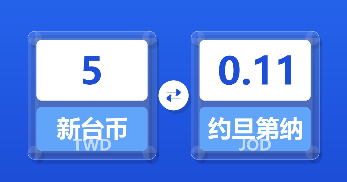 5 新台币 (TWD) = 0.11 约旦第纳尔 (JOD)
