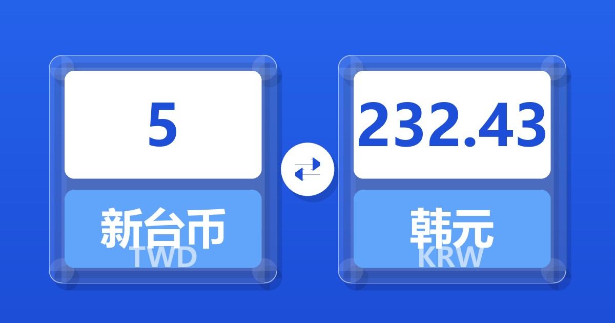 5 新台币 (TWD) = 232.73 韩元 (KRW)