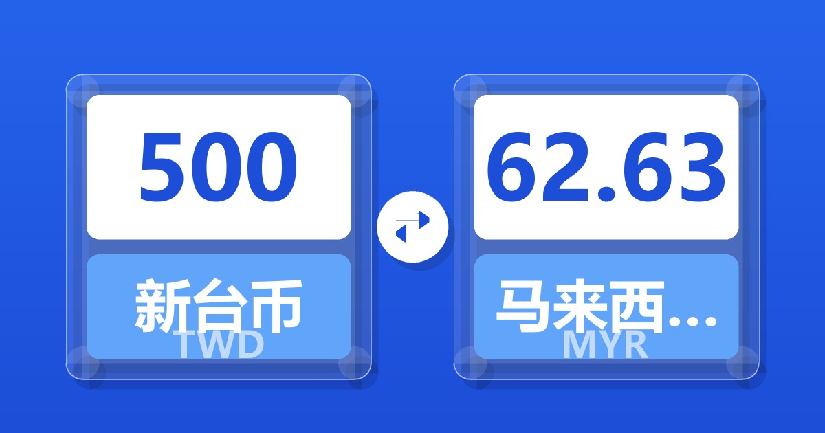 500 新台币 (TWD) = 62.63 马来西亚林吉特 (MYR)