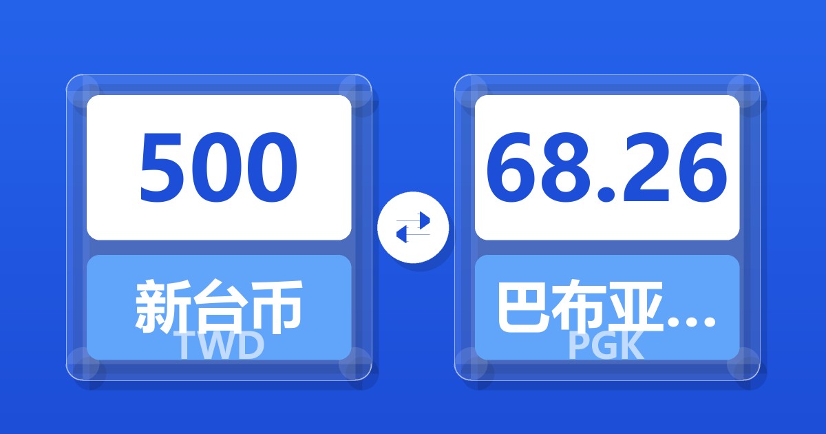 500 新台币 (TWD) = 68.83 巴布亚新几内亚基那 (PGK)