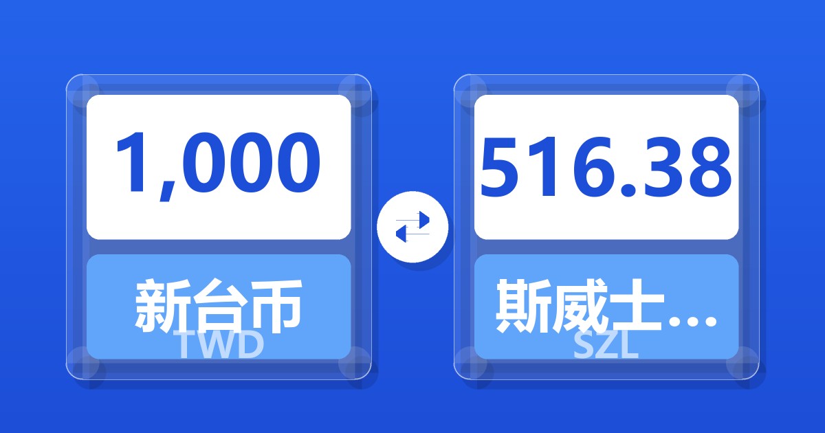 1,000 新台币 (TWD) = 516.38 斯威士兰里兰吉尼 (SZL)