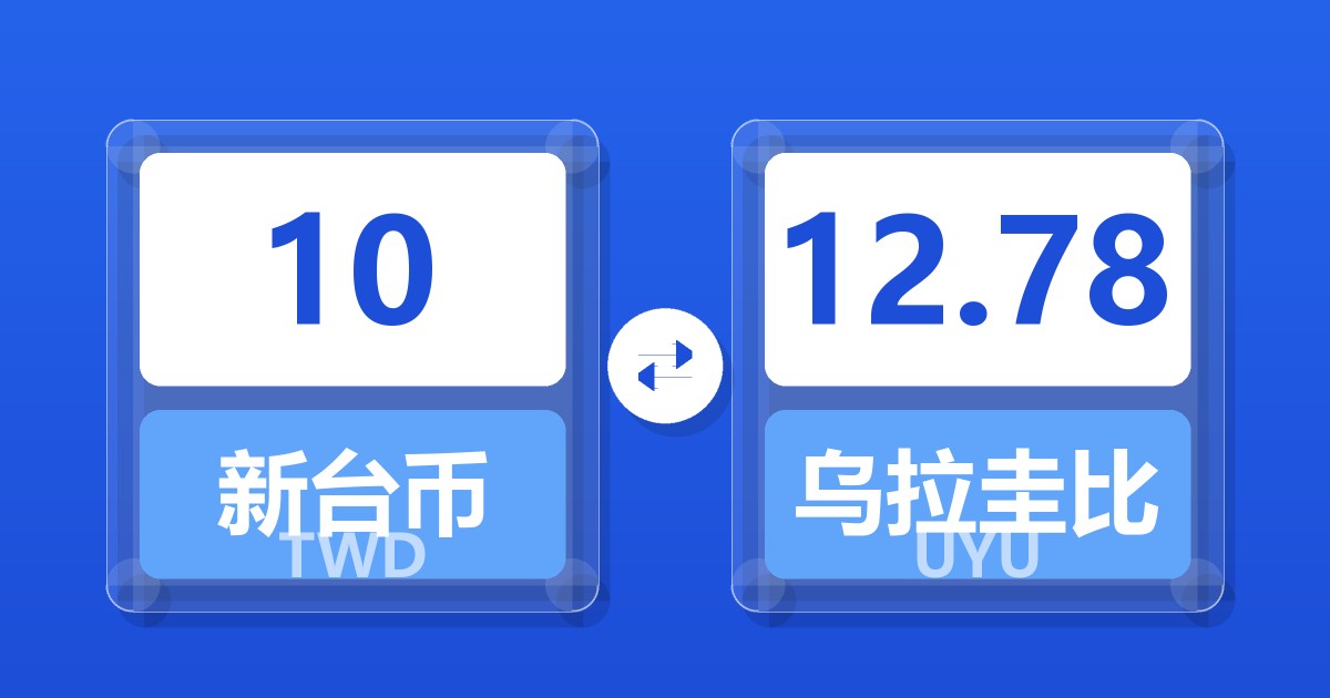 10 新台币 (TWD) = 12.76 乌拉圭比索 (UYU)