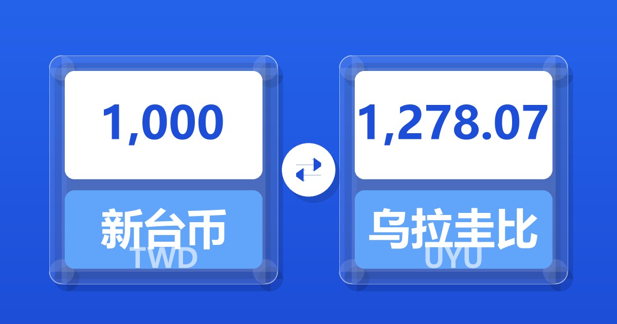 1,000 新台币 (TWD) = 1,275.92 乌拉圭比索 (UYU)