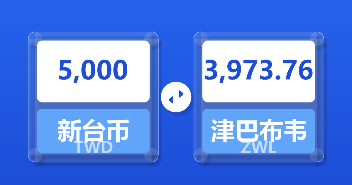 5,000 新台币 (TWD) = 3,973.76 津巴布韦元 (ZWL)