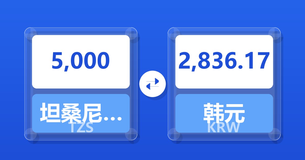 5,000 坦桑尼亚先令 (TZS) = 2,837.24 韩元 (KRW)