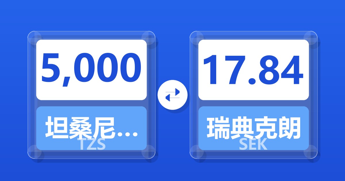5,000 坦桑尼亚先令 (TZS) = 17.86 瑞典克朗 (SEK)