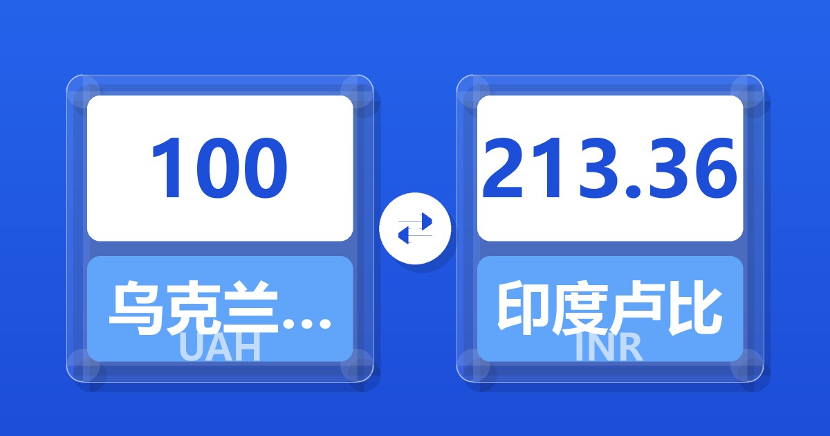 100 乌克兰格里夫纳 (UAH) = 213.36 印度卢比 (INR)
