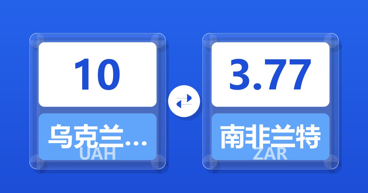 10 乌克兰格里夫纳 (UAH) = 3.78 南非兰特 (ZAR)