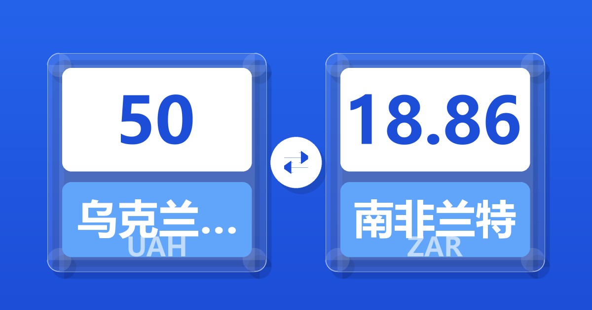 50 乌克兰格里夫纳 (UAH) = 18.90 南非兰特 (ZAR)