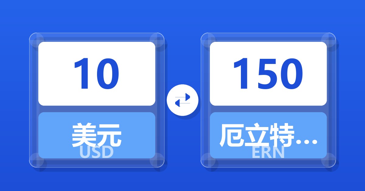 10 美元 (USD) = 150.00 厄立特里亚纳克法 (ERN)