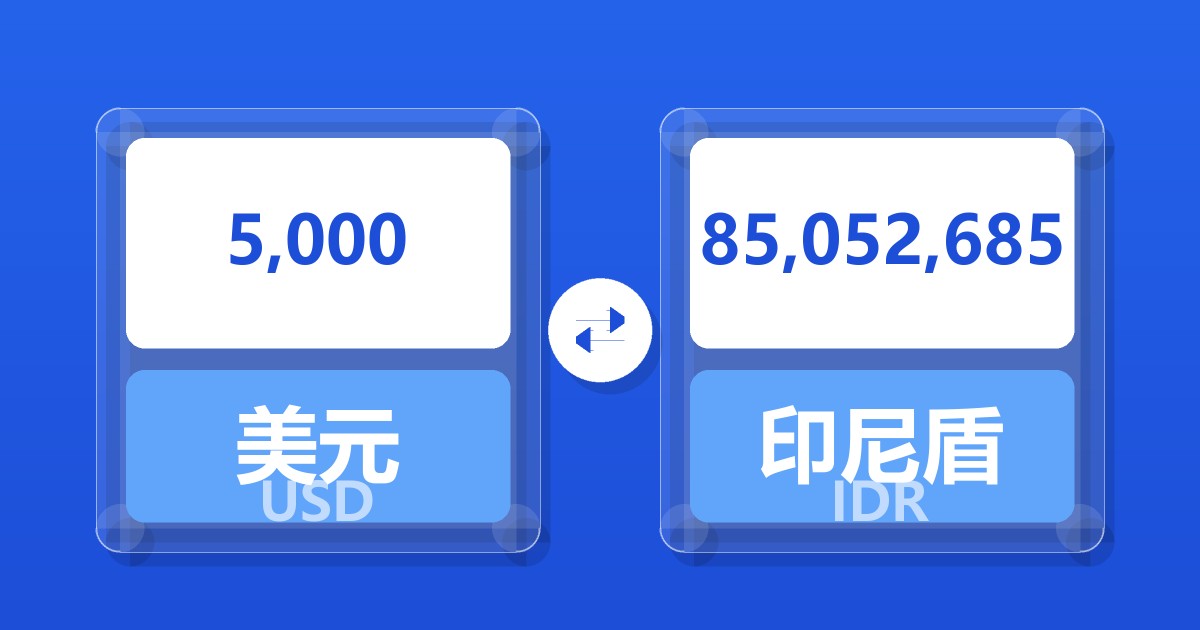 5,000 美元 (USD) = 85,052,685.00 印尼盾 (IDR)