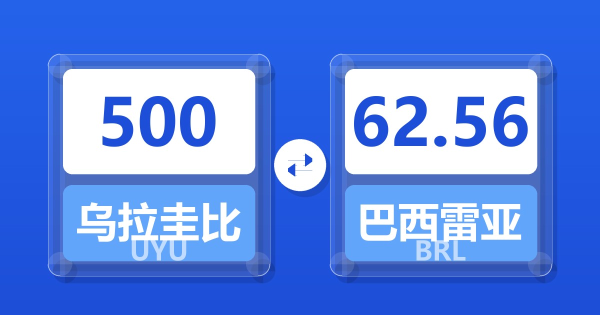 500 乌拉圭比索 (UYU) = 62.97 巴西雷亚尔 (BRL)