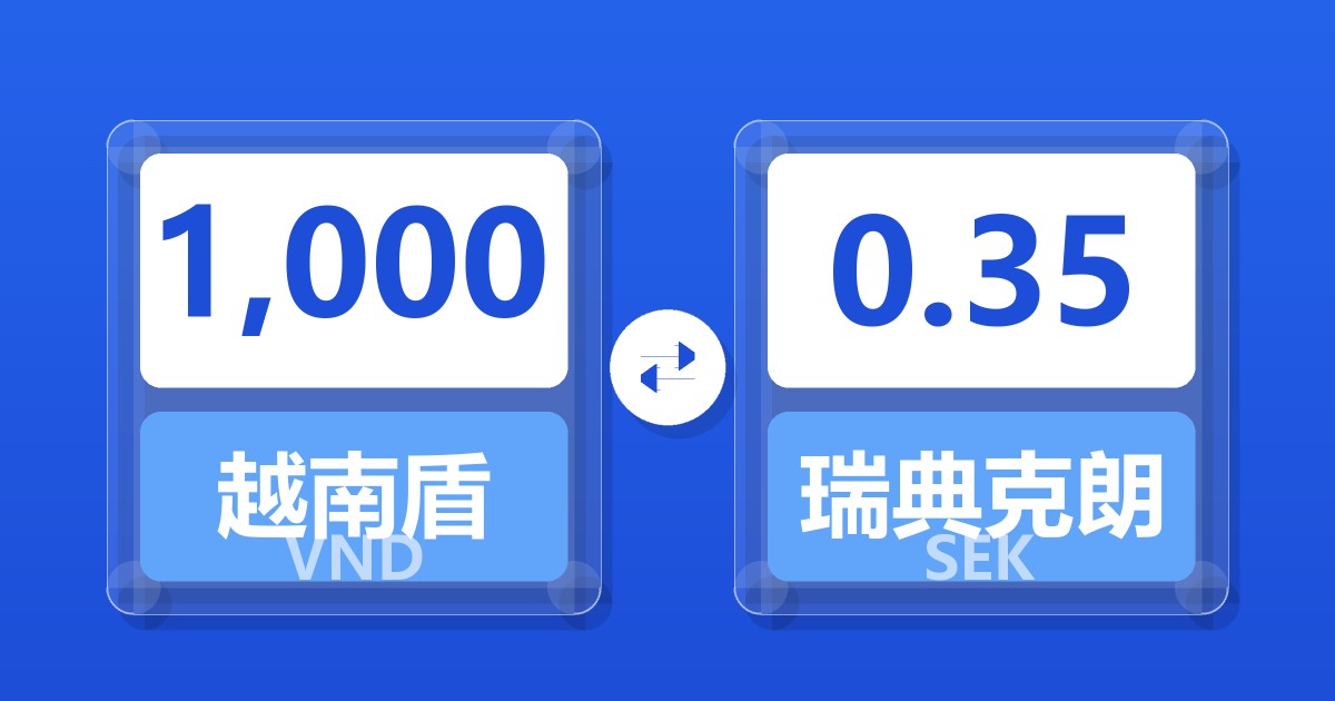 1,000 越南盾 (VND) = 0.35 瑞典克朗 (SEK)