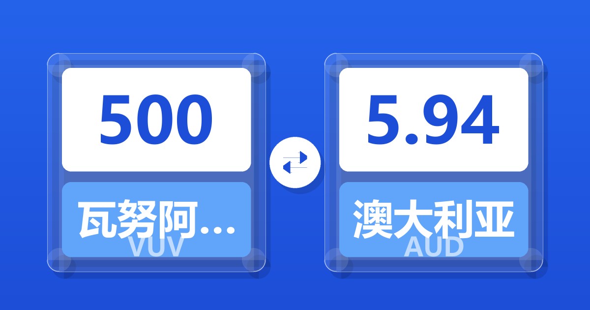 500 瓦努阿图瓦图 (VUV) = 5.91 澳大利亚元 (AUD)