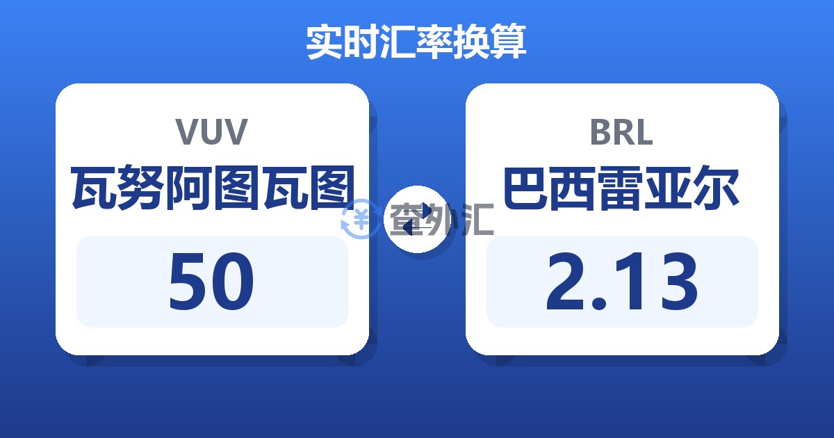 50 瓦努阿图瓦图 (VUV) = 2.12 巴西雷亚尔 (BRL)