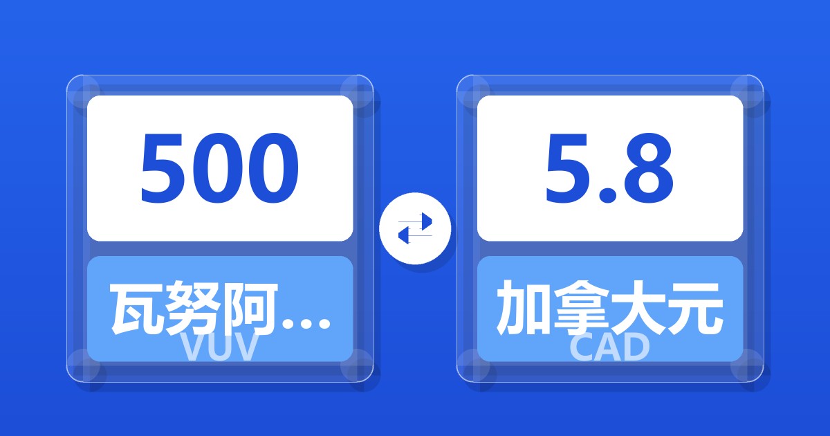 500 瓦努阿图瓦图 (VUV) = 5.76 加拿大元 (CAD)